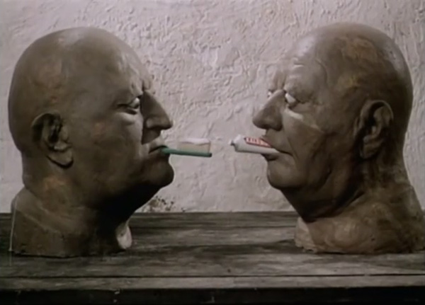 ابعاد گفتگو اثری مشهور از کارگردان چکسلواکی جان شوانکمایر (Jan Švankmajer) می باشد که در سال 1983 منتشر شده و جایزه جشنواره فیلم انسی و برلین را از آن خود کرده است. این استاپ موشن کمدی و فانتزی به سبکی حرفه ای با تکنیک انیمیشن اشیا و خمیری ساخته شده است.